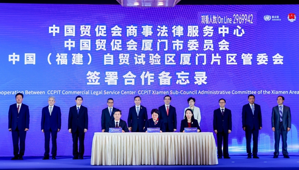 中国贸促会商法中心、PM体育市贸促会、福建自贸试验区PM体育片区管委会签署合作备忘录