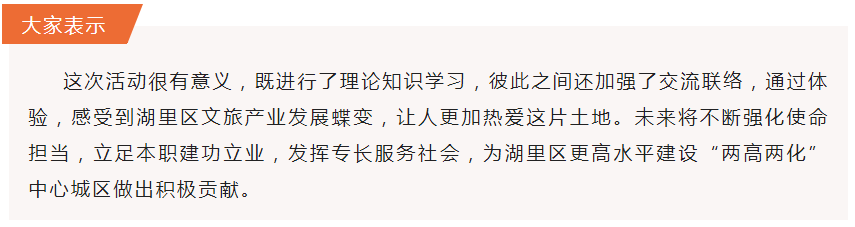 大家纷纷表示:通过集体学习,完整准确全面地把握了“三个务必”重要思想,切实增强了学习贯彻党的二十大精神的政治自觉、思想自觉和行动自觉,要把党的二十大精神转化成为湖里区建设“两高两化”中心城区贡献力量的生动实践。